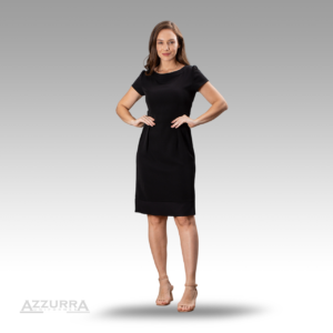 Vestido modelo plissê com decote redondo, cavado.